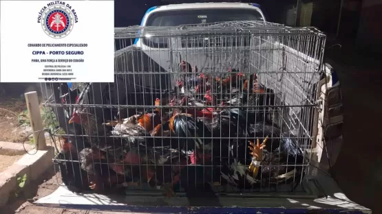 Policiais da Companhia Independente de Polícia de Proteção Ambiental (CIPPA), de Porto Seguro, com apoio da 87ª Companhia Independente de Polícia Militar apreenderam, na tarde deste domingo (28), 120 galos de briga em uma residência no Bairro Rosa Luxemburgo, na cidade de Teixeira de Freitas. A ação faz parte da Operação Guardiões do Bioma.