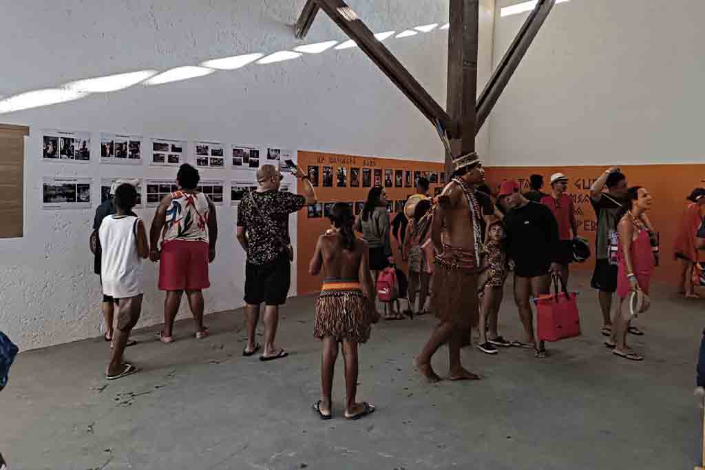 Após cerca de seis anos de inatividade, o Museu Indígena Pataxó da Aldeia Coroa Vermelha, em Santa Cruz Cabrália, foi reinaugurado no sábado passado (20) com a exposição temporária intitulada “Ãbakohay ūg kahab: memória e viver Pataxó”. A mostra é fruto de um projeto coletivo em torno da reconstrução do Museu Indígena Coroa Vermelha, que fechou suas portas em 2018. O museu foi inaugurado nos anos 2000, na celebração dos 500 anos do “descobrimento” do Brasil. Segundo o professor da Universidade Federal do Sul da Bahia (UFSB), Pablo Antunha Barbosa, devido à pressa na sua construção e à falta de planejamento a médio e longo prazo, após a celebração do evento, o museu foi progressivamente abandonado pelas autoridades responsáveis. A exceção foi a própria comunidade, que o manteve funcionando até 2018, quando o museu foi fechado para visitação turística, já que não havia mais condições para manter o edifício e as peças do acervo. Devido ao apelo afetivo do museu, a comunidade vem buscando retomar o museu a partir de novas bases. Desde o final de 2021, a UFSB vem participando ativamente desse processo, através do projeto de extensão Construção do Museu Indígena Pataxó de Coroa Vermelha (PJ008-2022), coordenado pelo professor Pablo Antunha Barbosa, pela professora Ângela Maria Garcia (IHAC/CSC) e pelo museólogo Julio Cézar Chaves. A atual exposição é o resultado desse trabalho coletivo, em parceria direta com a Associação dos Comerciantes do Parque Indígena da Aldeia de Coroa Vermelha. Para montar a exposição temporária, formou-se uma equipe curatorial, composta por Arissana Pataxó e Oiti Pataxó, grandes artistas contemporâneos do povo Pataxó. Fonte e fotos: Ascom/UFSB