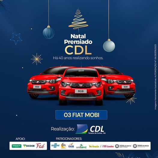 Nessa quinta-feira, 28 de dezembro o grande sorteio acontecerá na Praça da Bíblia, aberto para a toda comunidade. São 3 carros 0km que serão sorteados. Cada cliente que comprou nas lojas credenciadas da CDL, no valor de 50 reais estarão em busca da sorte de tornar-se ganhadores e levar um carro 0km. Não perca! A partir das 18:00h a Praça da Bíblia será palco de mais um evento que acontece a cada ano, realizado pela CDL de Teixeira de Freitas.