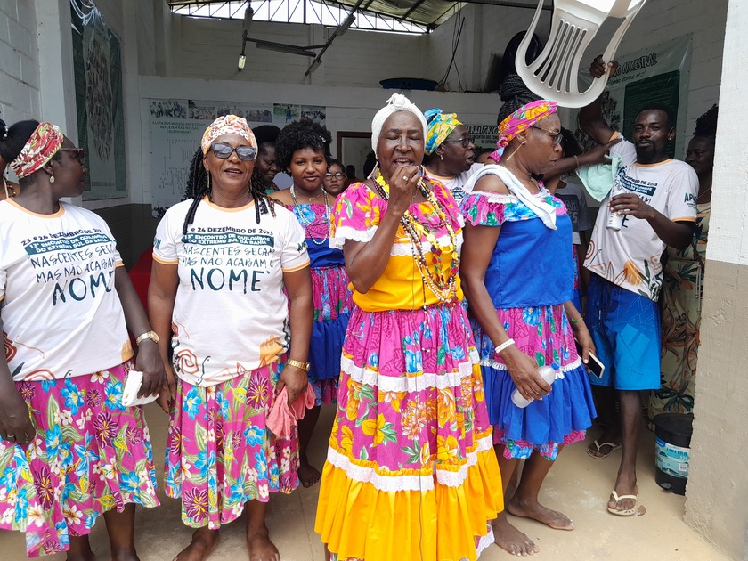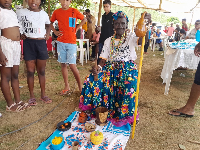 Célio Leocádio, presidente da APRVM fez uma honrosa homenagem a Dona Brasília, entregando um cetro munido de uma cumbuca representando a realeza de uma comunidade que resiste na luta em defesa dos ancestrais. Também foi entregue um banquinho onde a rainha sentou e cantou canções que traduzem a força e coragem de uma gente que luta para manter viva suas tradições e seus costumes.