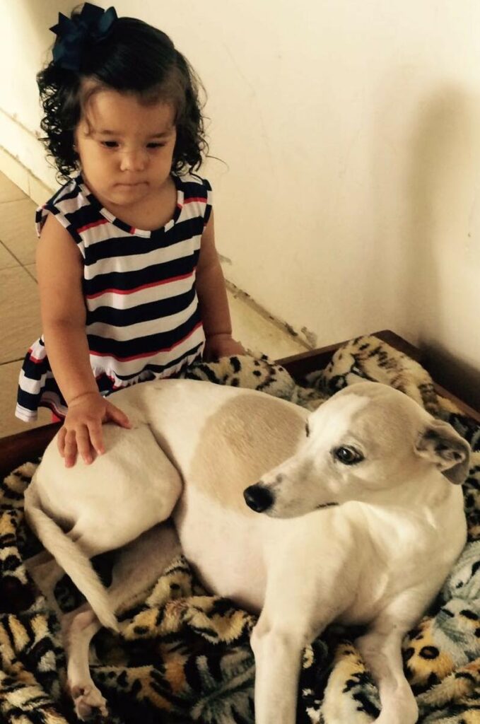 Segundo eles, a cadela é velhinha e por isso precisa de cuidados especiais.